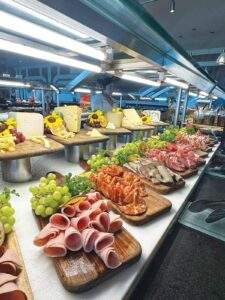 Charcuterie by Carrie offers handheld charcuterie options made fresh to order in three sizes: the nibble cup/small (meats and cheese on skewers), the mingle box /medium (2 meats, 3 cheeses), and the spread box /large (3meats, 4 cheeses). Larger boxes are available to feed larger groups, with the option to preorder; appreciated but not necessary. Carrie uses a variety of cheeses, pepperoni, salami, and prosciutto meats. Orders can be customized to meet customers dietary needs and preferences with gluten free and vegetarian options available.