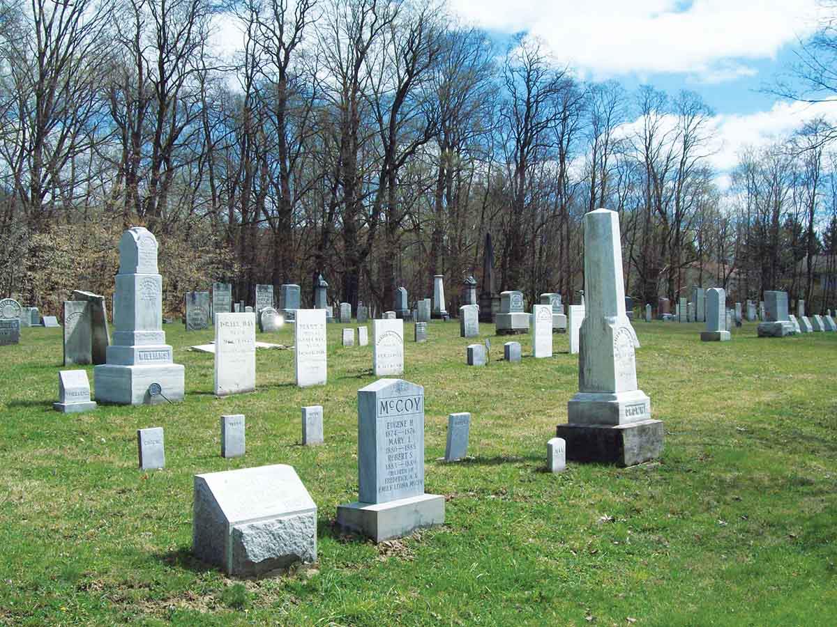 From there, the most logical place to go is the Jefferson Street Cemetery, where many Ellicottville notables and some rather notorious now reside. Meet Nelson Cool, the love- struck handyman who killed elderly, one-armed Civil War vet, Charles Wimple, for the love of Wimple’s desperate child-bearing-weary still a child herself, child-bride Emma, on a farm near the top of Fish Hill Road between Ellicottville and Little Valley (that section of Fish Hill is now called Murder Hill). Cool is one of several whose graves are not marked but who is listed on a new stone placed at the cemetery giving the names of those who were not located but are known to be there. Another was Jacob Pine who shared a jail cell with Cool after the Fish Hill murder but got out only later to be smashed by a train. Do ask about the gory details of his story. You will hear about executions, murders and mayhem (much involving likker), and be invited to visit, if you dare, the grave of local resident and spiritualist, Beals Litchfield, who helped found the LilyDale Spiritualist Center. It is around this grave that Ms. Frank reports seeing floating orbs of light. Oh yes, remember, this walk is at your own risk. Are you brave enough???? Remember to bring your silver, iron, salt or lavender for protection.