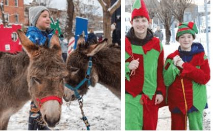 The event begins at 4PM, with the arrival of the elves by horse-drawn carriage. The elves spread out through the village; some will pass out candy and small toys, while others will be serving hot cocoa and cookies in the Alpine Bistro from 4:00 to 5:30 p.m. Horse-drawn carriage rides will run from 4:10 to 5:15 p.m. At 4:15 p.m. the Reindog Parade will step off in front of the Post Office.