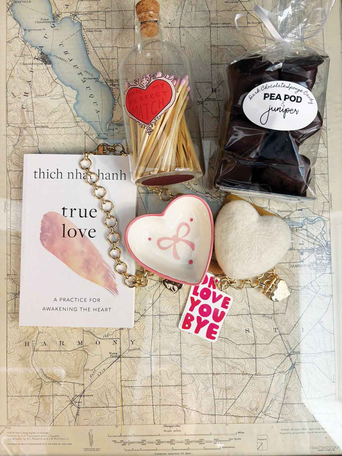 Pea Pod & Juniper opened at 141 Chautauqua Ave in 2021, by the clock tower, selling creative flower bouquets alongside gifts and a selection of candy. “I collaborated with a couple of friends who were into design and antiques. They sold their items in the shop on consignment.” Kim appreciated being surrounded by things she loved, and began to make that her mantra when selecting items for the shop. “I started to buy items for the shop simply based on the things I loved.” The selection grew and the shop was well received in the community.
