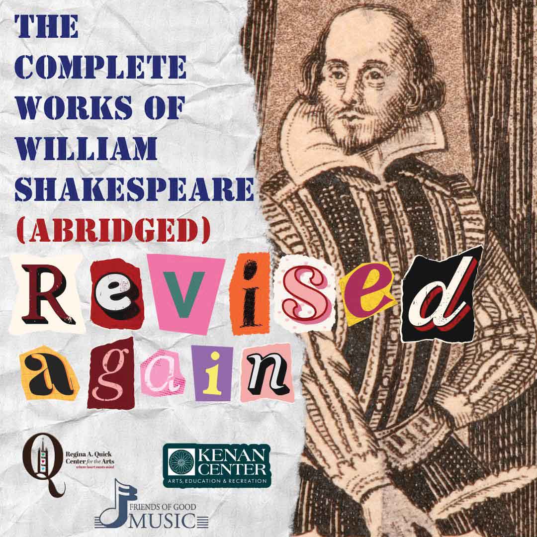 “The Complete Works of William Shakespeare (abridged) (revised) (again)” was written by Adam Long, Daniel Singer and Jess Winfield, with new revisions by Daniel Singer and Jess Winfield. It is produced by special arrangement with Broadway Play Publishing Inc. of New York City. Tickets are $20 for adults, $18 for senior adults, SBU staff and faculty, and $5 for students, and are available online at: ticketor.com/quickarts/tickets. The Regina A. Quick Center for the Arts is located at 3261 West State Street at Cornelius Welch Drive in Allegany, NY. The production is a presentation of the Kenan Center for the Arts (in Lockport, NY). For more information, call (716) 375-2494. The Galleries in the Quick Center will be open one hour before the performances and during intermission. Fun Fact: On April 24th, the Quick Center will host a reception and a concert to celebrate its thirtieth anniversary “Grand Finale”.